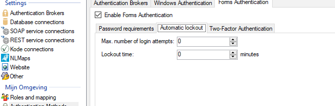 Vanuit de settings kunnen de eisen van het locken bepaald worden.