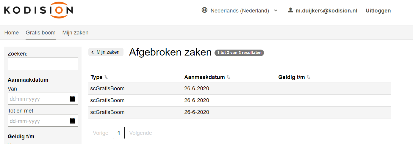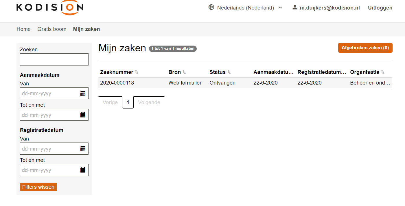 Wanneer een formulier nog niet is afgerond verschijnt hij bij afgebroken zaken