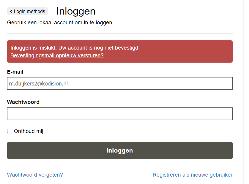 of wanneer je probeert in te loggen met een niet bevestigd account