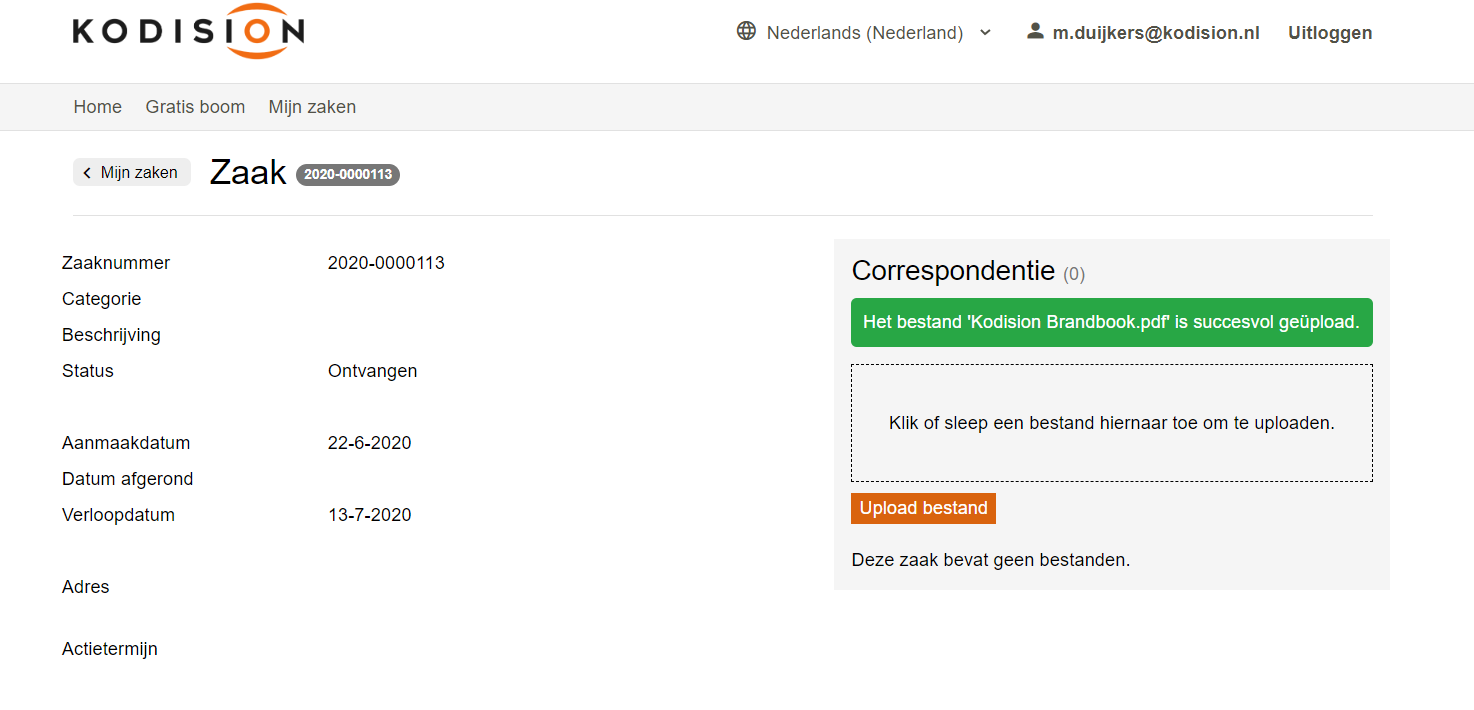 In het detail overzicht van je zaak kun je bestanden toevoegen