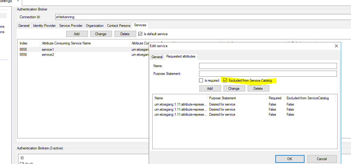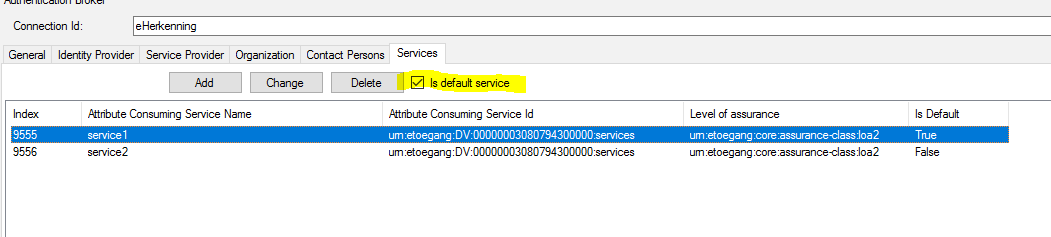 Bij het toevoegen van een service dien je nu de default service op te geven.