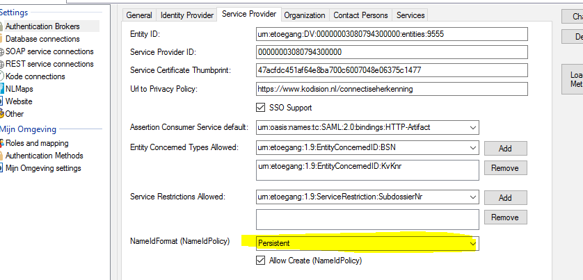 Standaard staat deze instelling goed voor eherkenning en DigiD. Er is een uitbreiding gemaakt om extra diensten te ondersteunen;