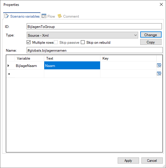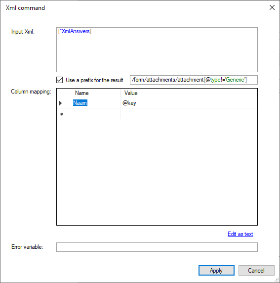 Wat je wel kan doen is filteren op bijlages. Dit kun je door doen de door te filter op de xml answers en deze naar een variabele te schrijven
