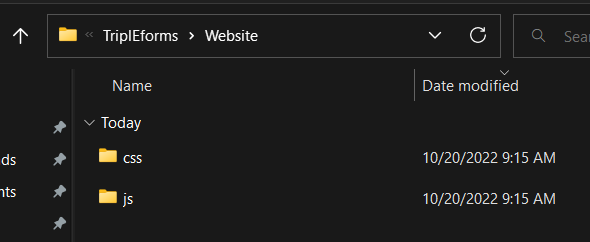 Kopieer de bestanden over de huidige website folder heen. Bijvoorbeeld voor TriplEforms
