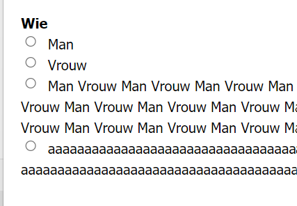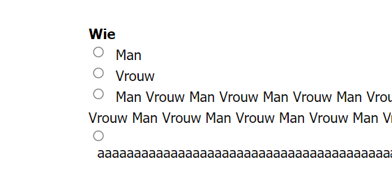 .radiobutton-input input[type="radio"] { float: left !important; } .radiobutton-input label { overflow-wrap: anywhere; }0 Stemmen